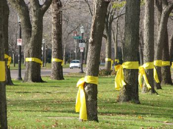 The Yellow Ribbon around the old tree.