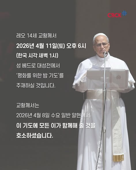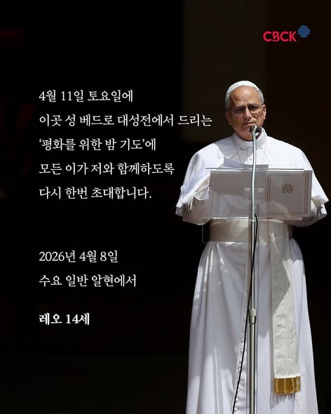 (레오 14세 교황님과 함께 – 각자 가정에서 ) 평화를 위한 밤샘 기도 (시카고 시각: 11일 아침 11시부터)