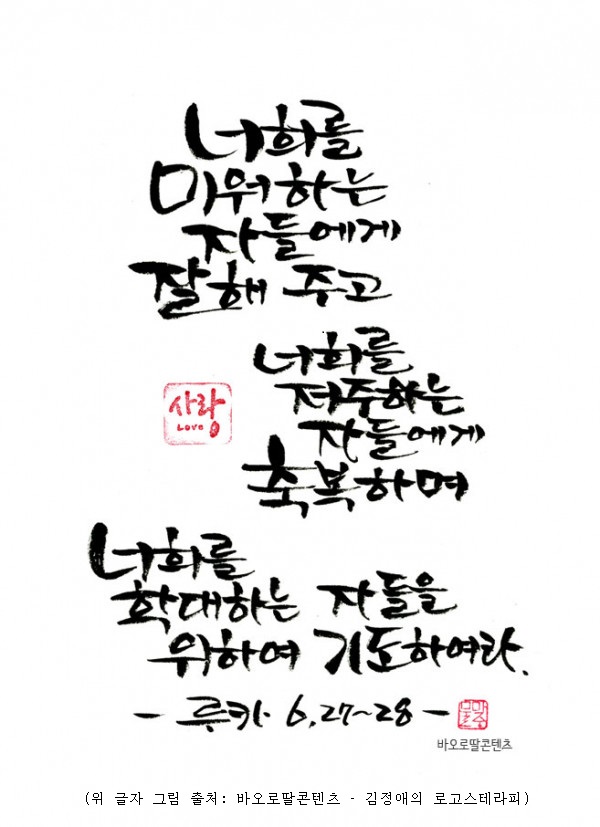 (2/23 주일 Sunday-한영) 연중 제7주일 7th Sunday in O.T. + 강론 February 22, 2025 연중 제7주일 Seventh Sunday in Ordinary Time (그림 출처: 장석범 분도 교우님 작품) 강론 – 여기를 클릭하십시오 아래를 클릭 ! 한국어 읽기 (루카 6,27-38) 한국어 듣기 (루카 6,27-38) English-Readings (Luke 6:27-38) English-Listen Podcast (Luke 6:27-38)